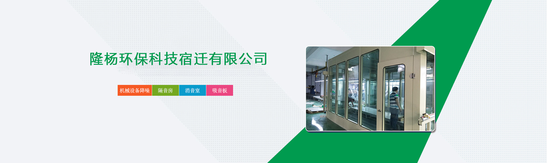 隆楊環保科技宿遷有限公司是一家專業從事機械設備降噪,隔音房,消聲室,等產品開發與施工的企業。公司在噪聲與振動控制領域具有承接綜合性噪聲治理工程的雄厚實力。可自環評分析、工程設計、產品制作、安裝施工、售后服務等等諸多環節提供交鑰匙總承包服務。我們本著用戶至上,質量為本的原則,不斷探索新方法,總結新經驗,產品質量取得用戶的一致好評。